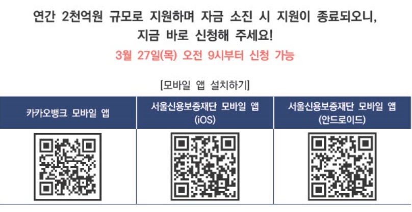 카카오뱅크 앱(1599-3333) 또는 서울신용보증재단(1577-6119) 앱 사용.