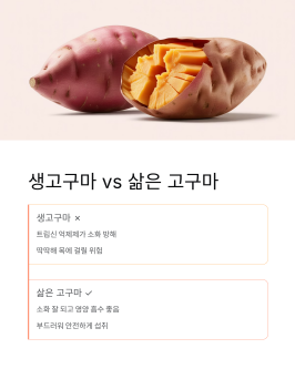 생고구마에는 트립신 억제제라는 성분이 있어요. 이게 소화를 방해하고 배탈을 일으킬 수 있거든요. 딱딱해서 목에 걸릴 위험도 있고요.