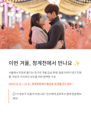 올겨울, 청계천이 왜 꼭 가야 하는 서울의 겨울 명소가 되었을까요? 이 글 하나만 보면 ‘2025 겨울, 청계천의 빛’의 날짜부터 프로그램까지 한 번에 정리됩니다!