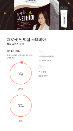 제로윗 단백질 스테비아 커피믹스는 2024년 10월 펄세스에서 출시한 신제품이에요. 펄세스는 원래 제로윗 브랜드로 유명한데, 여기에 단백질 라인을 새롭게 추가한 거죠. 한 포당 약 3g의 단백질에 칼로리는 35~40kcal, 그리고 당류는 완전 제로예요! 제로 슈가를 강조하는 만큼 혈당 관리가 필요한 분들에게 특히 좋아요.