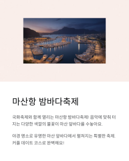 마산항 밤바다축제도 함께 열려요. 야경 명소로 유명한 마산 앞바다에서 펼쳐지는 축제라 더욱 특별하죠. 국화축제 보고 나서 자연스럽게 밤바다축제까지 이어지니까 하루 종일 즐길 수 있어요.