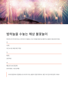 - 불꽃 쇼 관람 30분 전엔 자리 선점하기