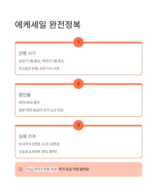 에케세일은 에어로케이가 상·하반기 연 2회 운영하는 얼리버드 항공권 프로모션이에요.