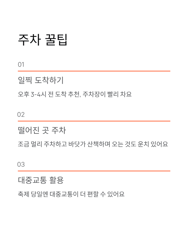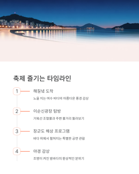 낮에는 여수 다른 명소들 구경하고, 저녁에 축제 가는 코스로 계획하면 딱이에요. 오동도, 향일암, 여수 해상케이블카 같은 곳들도 함께 둘러보시면 알찬 여수 여행이 될 거예요.