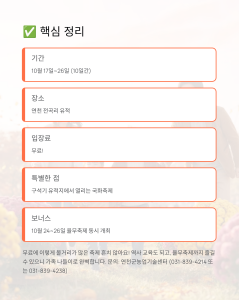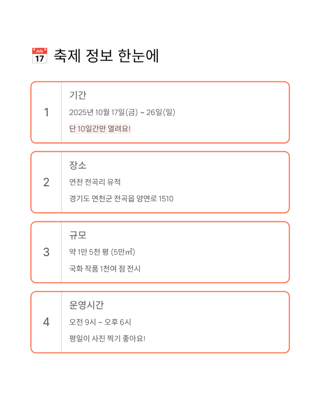 오늘은 2025년 연천 국화축제에 대해 알아봤어요. 핵심만 정리하면: