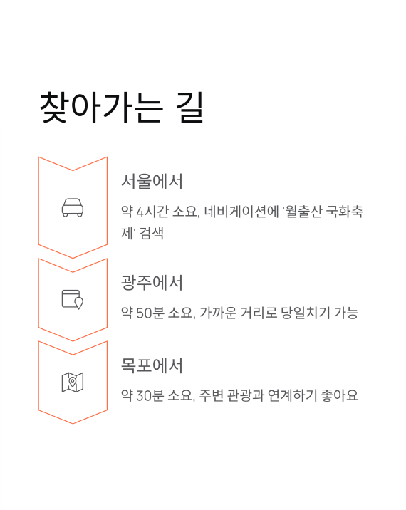 월출산 국화축제 보고 시간 남으면 주변 관광지도 들러보세요. 월출산 국립공원, 영암 도기박물관, 왕인박사 유적지 등이 가까워요. 하루 코스로 잡고 천천히 둘러보기 좋아요.