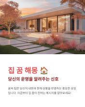 - 집의 상태가 중요: 집은 현재 **자신의 운명과 기반**을 상징합니다. 깨끗하고 좋은 집은 길운을, 낡거나 무너진 집은 흉운을 의미합니다.