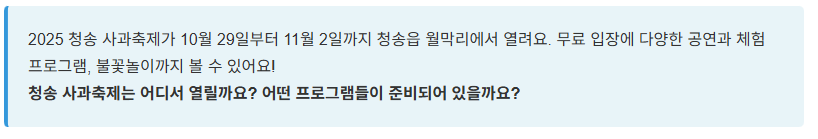 🎪 청송 사과축제 프로그램 하이라이트(11/2)