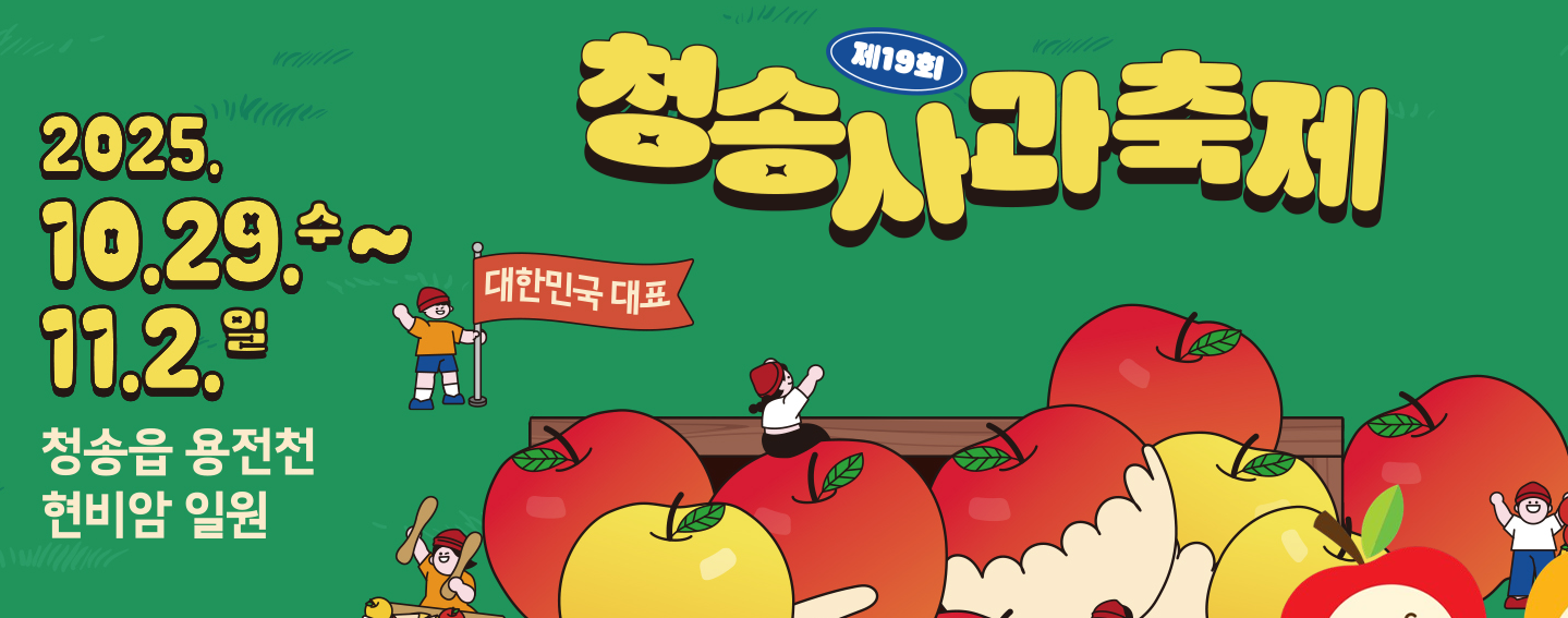 청송 사과축제는 2025년 10월 29일부터 11월 2일까지 5일 동안 열려요. 가을 사과가 제일 맛있을 때 하는 축제라서 완전 딱이에요!