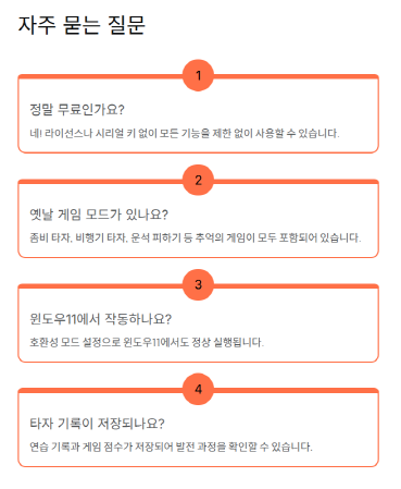 셋째, 학교나 직장에서 사용하던 익숙한 연습 방식 그대로라서 적응이 빨라요. 넷째, 최신버전에 없는 고전 타자 게임 모드들이 포함되어 있죠. 특히 타자 속도를 재미있게 향상시킬 수 있는 여러 미니게임들이 큰 매력 포인트예요!