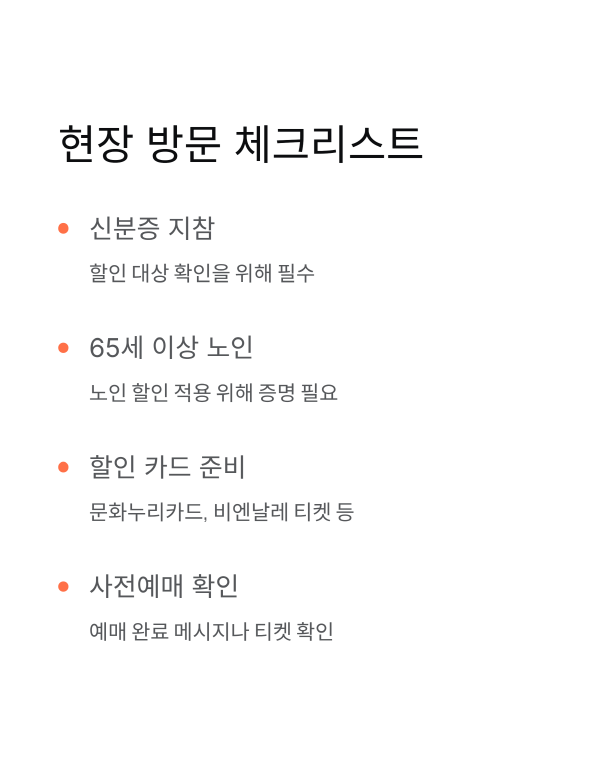 노인 분들은 65세 이상부터 할인 적용되니까 신분증 꼭 가져가세요. 의외로 깜빡하시는 분들 많더라고요.