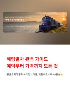 해랑열차 여행은 예약 경쟁, 객실 선택만 제대로 하면 가족·친구모임·특별한 기념일에도 평생 추억이 되는 럭셔리 열차 여행이에요. 2인·4인은 물론 패밀리룸까지 코스별 가격, 부산출발 일정, 예약팁까지 꼭 참고하세요!