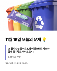 드디어 정답을 확인할 시간이에요! 물티슈 분리배출에 대한 오늘의 퀴즈, 정답은 무엇일까요?