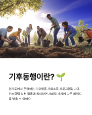 기후동행은 경기도에서 운영하는 기후행동 기회소득 프로그램이에요! 탄소중립 실천 활동에 참여하면 사회적 가치에 따른 리워드를 받을 수 있는 정말 좋은 제도랍니다.