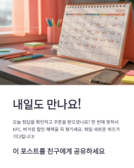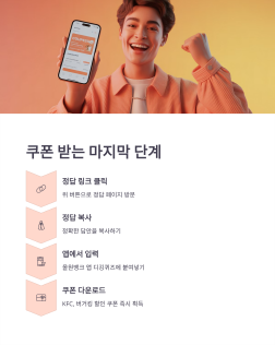 정답을 입력하고 나면 바로 쿠폰을 다운로드할 수 있어요. KFC, 버거킹, 롯데리아 같은 곳에서 사용 가능한 할인 쿠폰이니까 꼭 챙겨가세요!