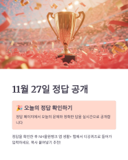 여러분이 가장 궁금해하실 오늘의 정답을 확인할 시간이에요! 다시 도전할 수 없으니 아래 링크에서 정답을 정확하게 확인하고 입력하세요.