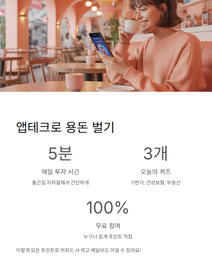 매일 잠깐만 투자해도 포인트가 쌓이는 토스퀴즈, 꾸준히 참여하면 한 달 용돈 정도는 충분히 모을 수 있어요.