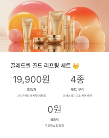 단 3시간만 진행되는 캐시딜 제로딜 특가 상품, **끌레드벨 프레스티지 골드 리프팅 스킨케어 4종 세트**가 두 번째 퀴즈입니다. 19,900원이라는 믿기지 않는 가격에 무료배송까지 진행 중이라 많은 분들이 찾으실 것 같아요.