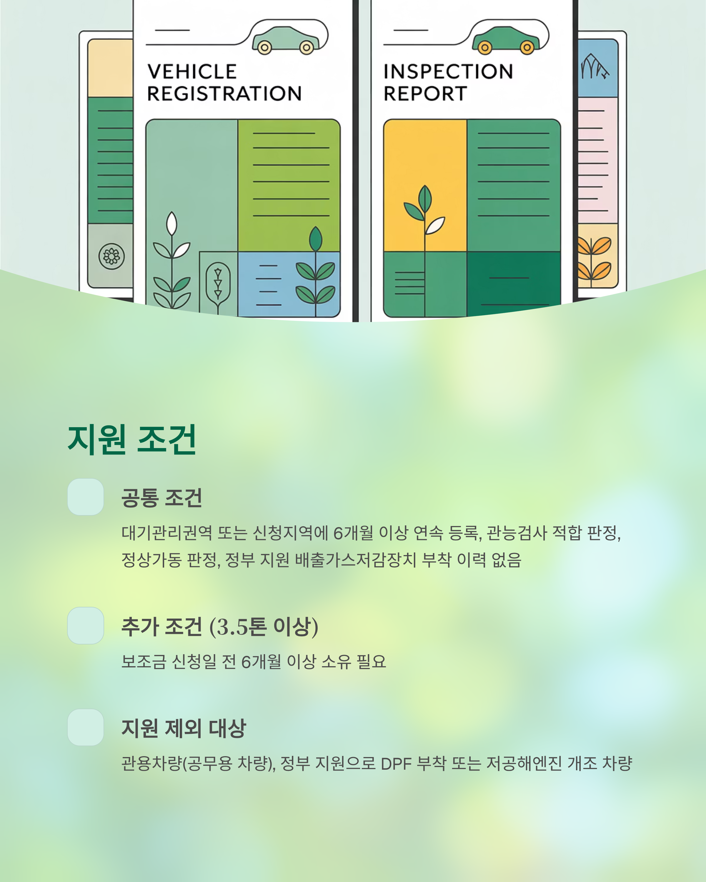- ※ 2025년부터 배출가스저감장치(DPF) 부착 4등급 차량도 지원 대상 포함