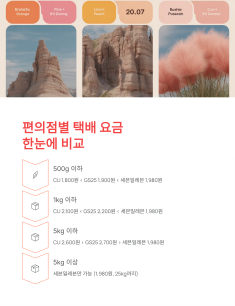 • 1kg 이하: CU 2,100원 < GS25 2,200원 < 세븐일레븐 1,980원