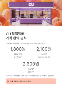 ✅ 가벼운 소형 물품 (500g~1kg): CU 알뜰택배 1,800~2,100원 최저가
